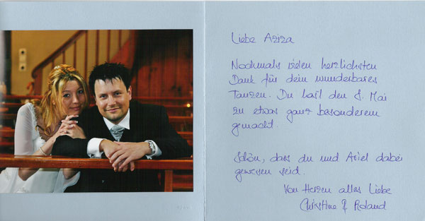 Merci vielmal, dass du an unserer Hochzeit aufgetreten bist. Das war einfach super und hat noch einen Tupfer an Charme reingebarcht.